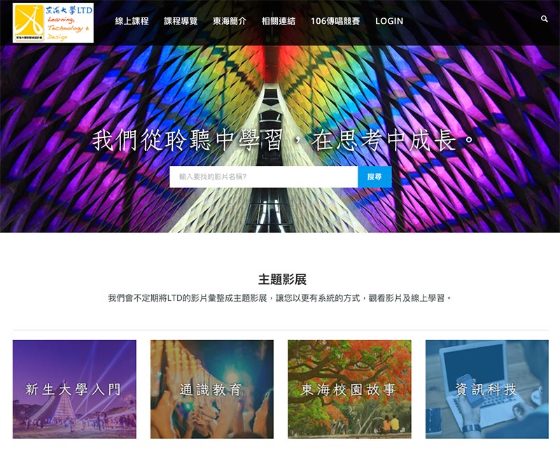 LTD(Learning、Technology、Design)影音學習平台整合校內各項講座、課程及系列活動之影音資料庫,為線上教學及翻轉教室,提供紮實的基礎,使學習能夠不受限於時空因素,得以傳播到東海每個角落。東海LTD包含了創意、職涯與創業三個主軸,每個主軸都有豐富的內涵,希望能透過東海LTD,強化社群間跨領域的整合。