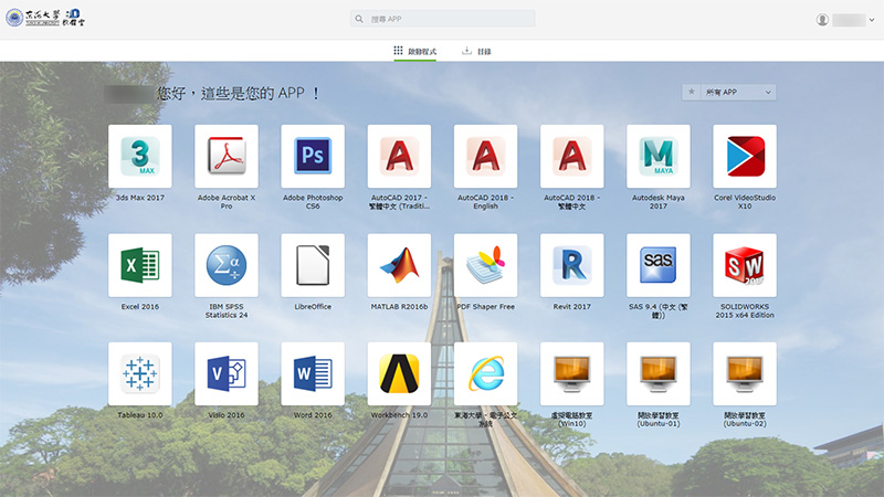 只要您是東海大學的教職員、學生,無論您人在校內或校外,你只需一台具備網際網路連線的裝置,無論是筆電、手機或者是平板電腦,透過你裝置內的瀏覽器24小時之中皆可遠端連上本校「3D軟體雲系統」,你在也不需要等待更多的時間來安裝這些麻煩又難以安裝的軟體,也不需要考慮花錢更換更好的電腦,只需要以你學校內的THU-NID及THU-PW認證身份,登入後隨點即用軟體,甚至不須安裝應用程式。