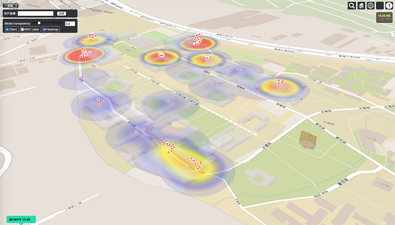 Wi-Fi裝置定位系統提供3D地圖定位供校內師生參考,呈現資訊均為Wi-Fi連結的行動裝置,在每棟大樓的各樓層立體地呈現,有利搜尋、足跡追蹤、人流分析、安全監控。